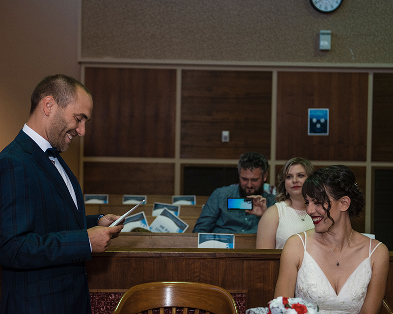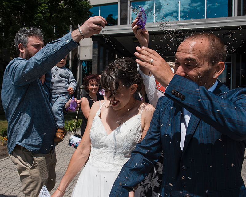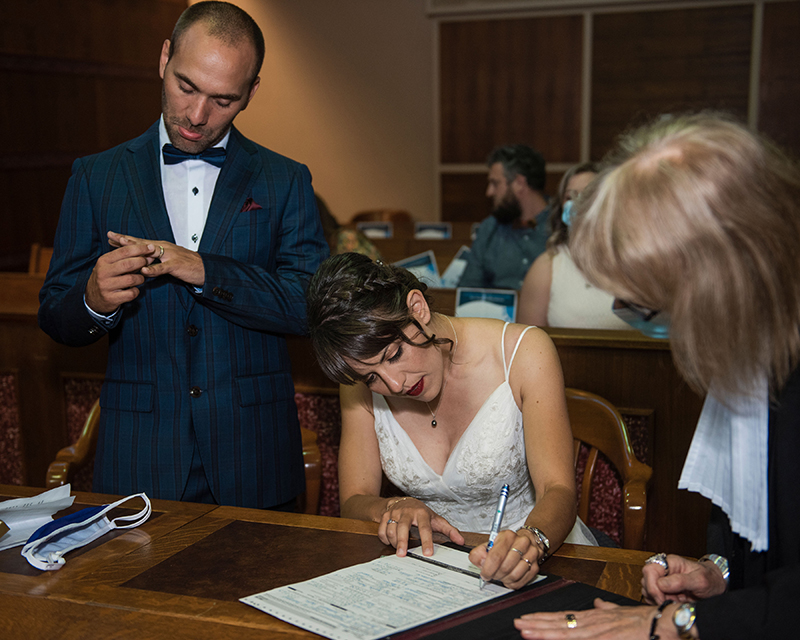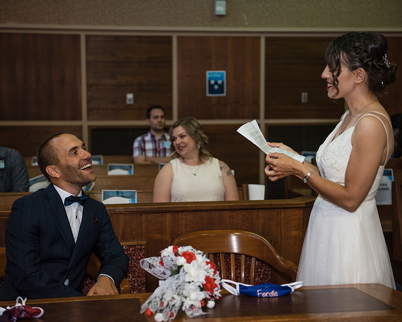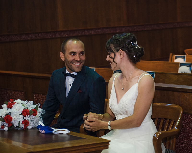 Alex: Tout a mieux été que prévu… pas de pluie, personne en retard et aucune mauvaise surprise. J’étais un peu stressée au moment de nous rendre au Palais de Justice, mais tout ce stress a disparu quand j’ai avancé vers Mathieu. À partir de là, que du bonheur !